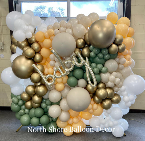 Sage "Baby" Shower Organic Balloon Wall & Photo Op Backdrop