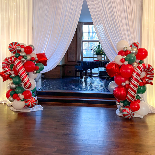 Candy Cane Balloon Columns Create a bold, festive entrance with our Candy Cane Balloon Columns, the perfect statement pieces for holiday parties, c...