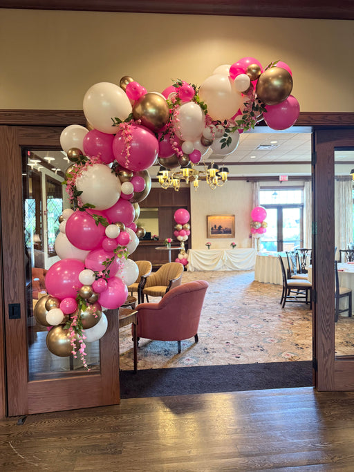 Our designs feature large-scale balloon designs flowing throughout your whole venue, LED letters and numbers, fresh flower arrangements and greenery accents, quality vases, color-changing twinkle lights, back drops such as hedge walls or fabric, ribbon accents, stuffed animals, and (nearly) anything else your heart desires.