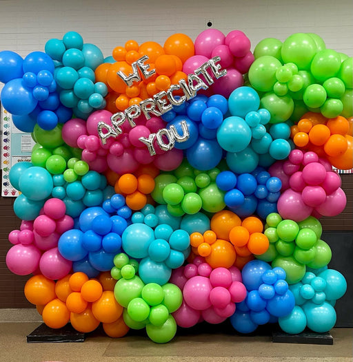 Our designs feature large-scale balloon designs flowing throughout your whole venue, LED letters and numbers, fresh flower arrangements and greenery accents, quality vases, color-changing twinkle lights, back drops such as hedge walls or fabric, ribbon accents, stuffed animals, and (nearly) anything else your heart desires.